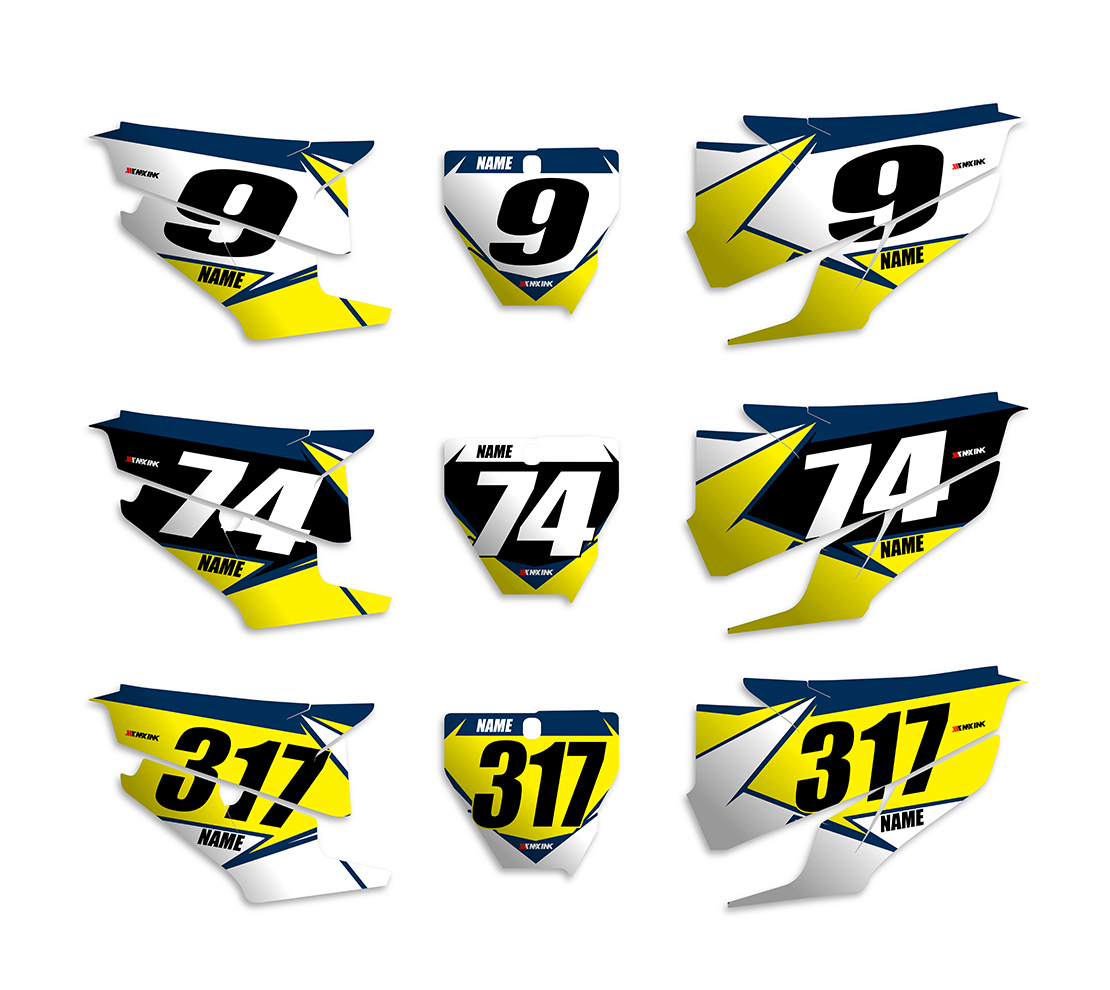 Delta Series Backgrounds. Features factory style border design. Custom made with your name & race number. Choose your border, background and number colour.
