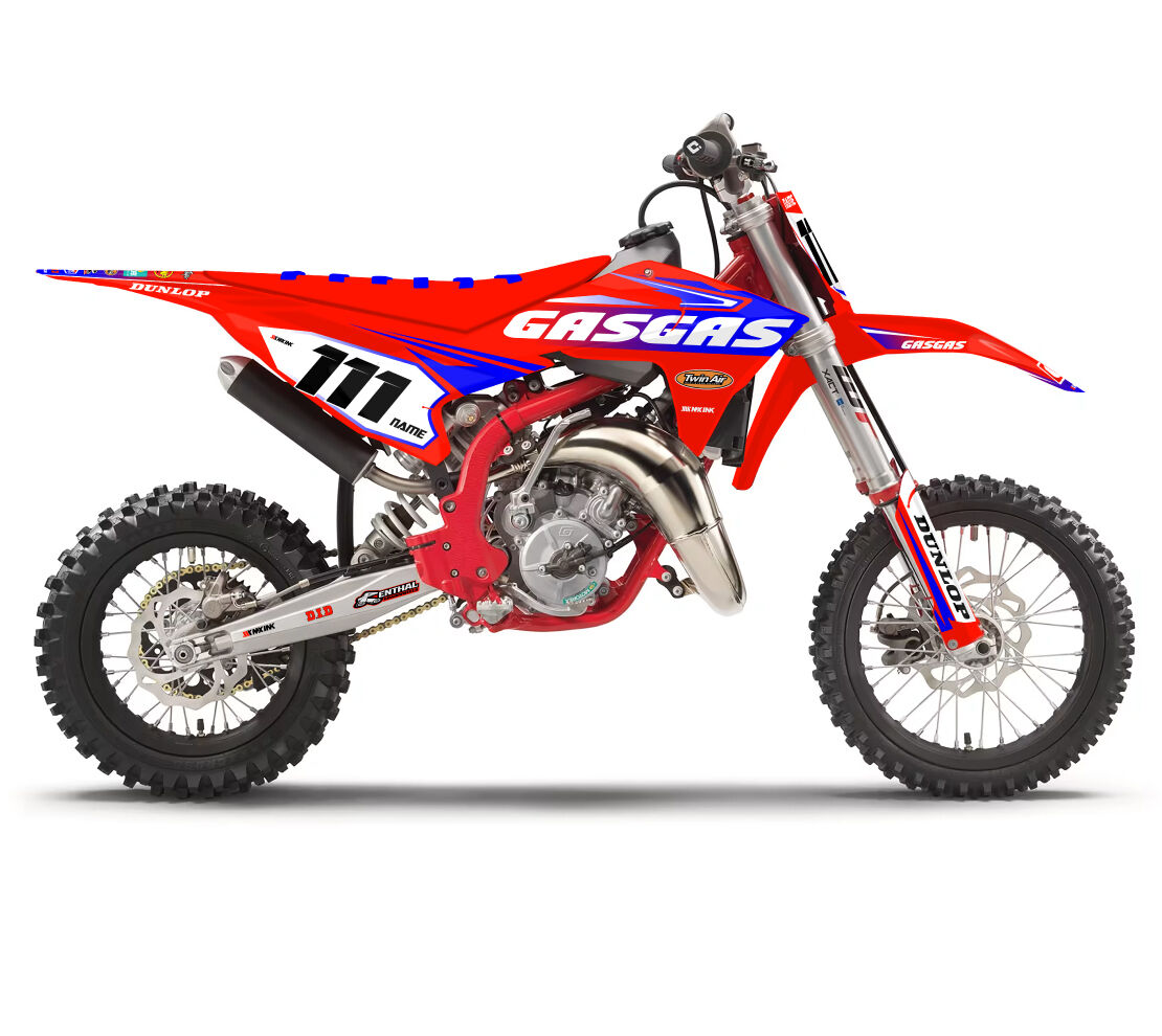 Gas Gas MC50 MC65 MC85 Circuit Series Blue Full Graphics Kit. Custom made with your name & race number. Add your sponsor logos (Optional).