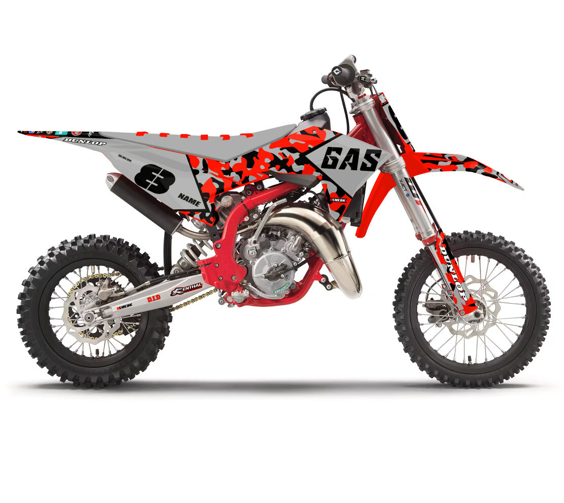 Gas Gas MC50 MC65 MC85 Concealed Series Grey Full Graphics Kit. Custom made with your name & race number. Add your sponsor logos (Optional).