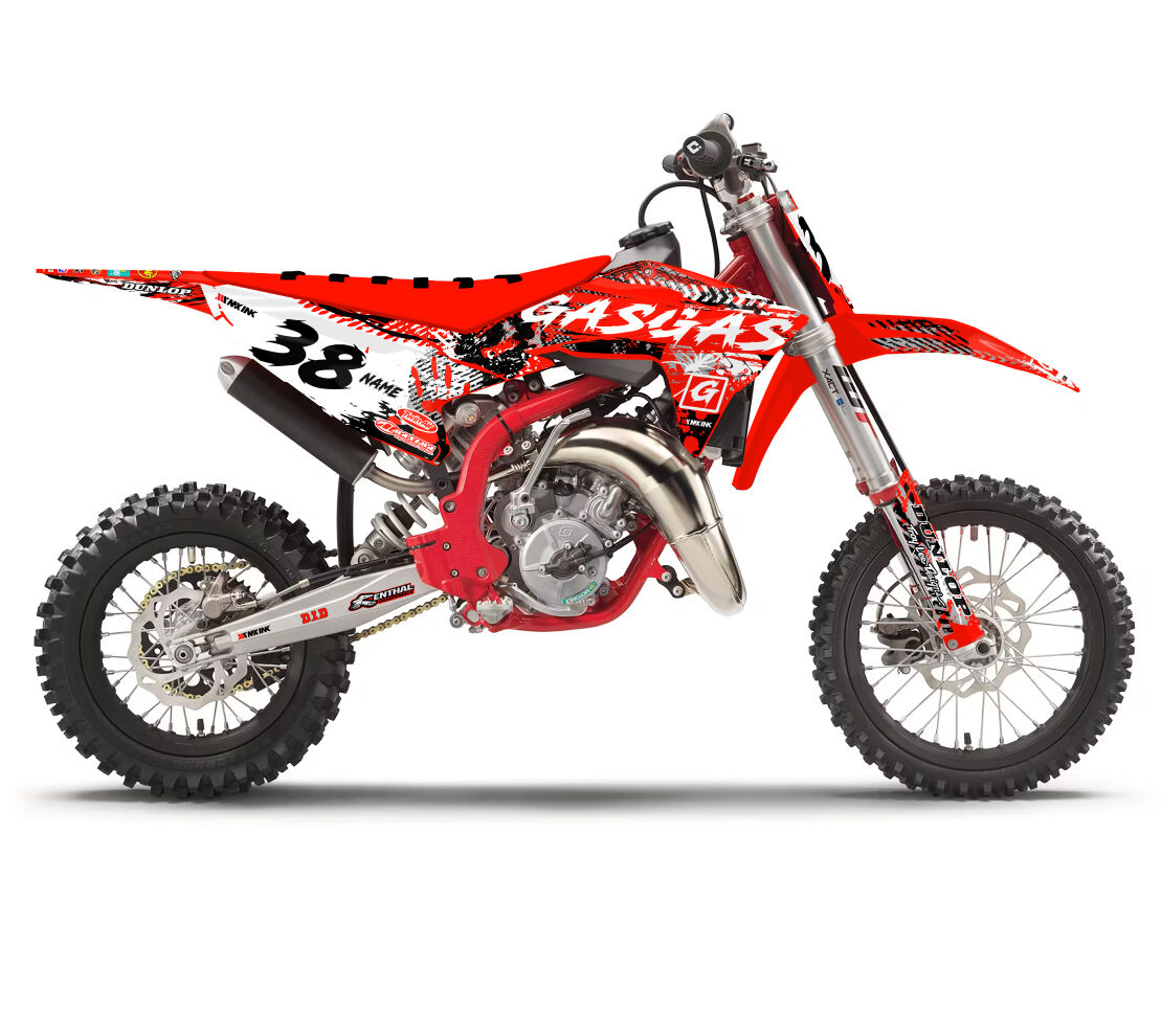 Gas Gas MC50 MC65 MC85 Ghost Series Full Graphics Kit. Custom made with your name & race number. Add your sponsor logos (Optional).