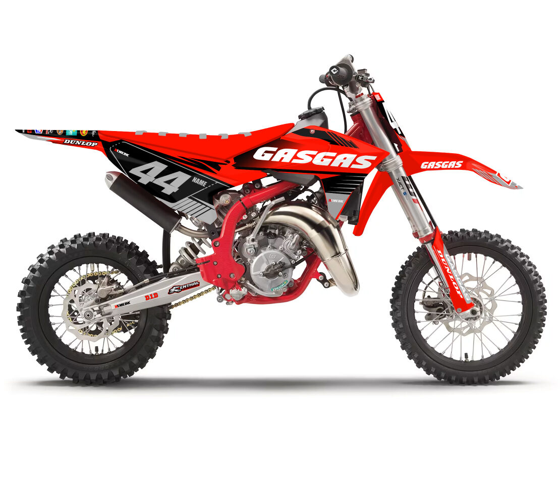 Gas Gas MC50 MC65 MC85 Momentum Series Grey Full Graphics Kit. Custom made with your name & race number. Add your sponsor logos (Optional).