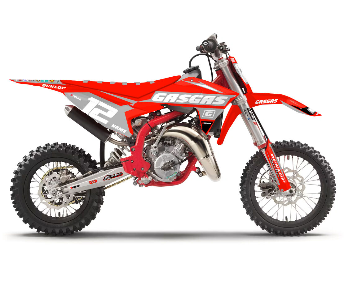 Gas Gas MC50 MC65 MC85 Pulse Series Grey Full Graphics Kit. Custom made with your name & race number. Add your sponsor logos (Optional).