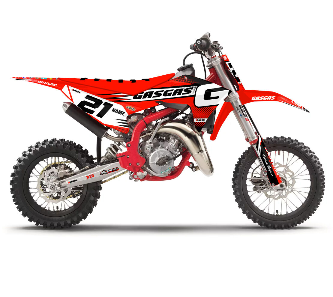 Gas Gas MC50 MC65 MC85 Radiate Series Full Graphics Kit. Custom made with your name & race number. Add your sponsor logos (Optional).