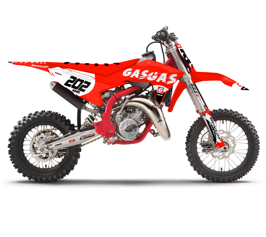 Gas Gas MC50 MC65 MC85 Rush Series Full Graphics Kit. Custom made with your name & race number. Add your sponsor logos (Optional).