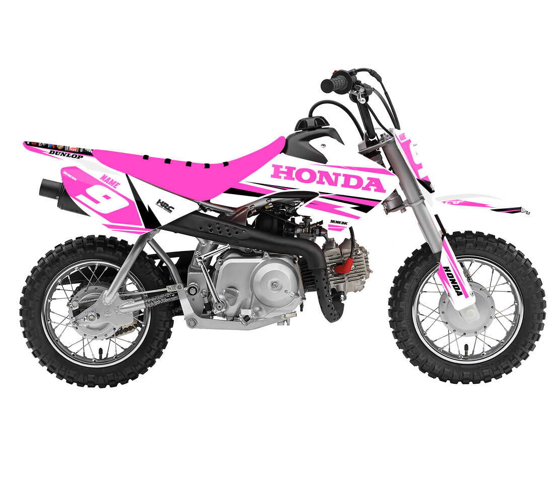 CRF50 Breach Series Pink Full Graphics Kit. Custom made with your name & race number. Add your sponsor logos (Optional).