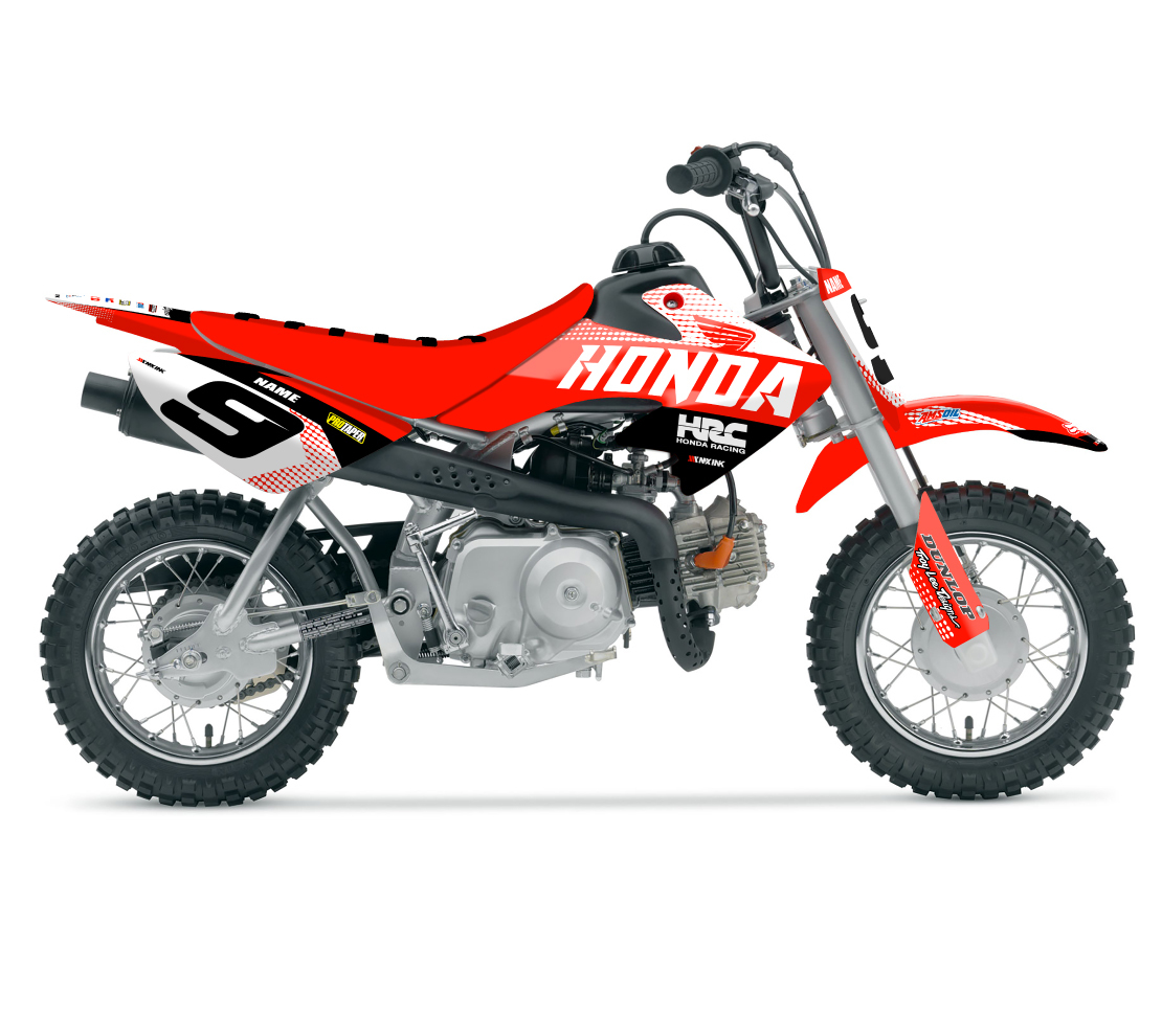 CRF50 Surge Series Full Graphics Kit. Custom made with your name & race number. Add your sponsor logos (Optional).