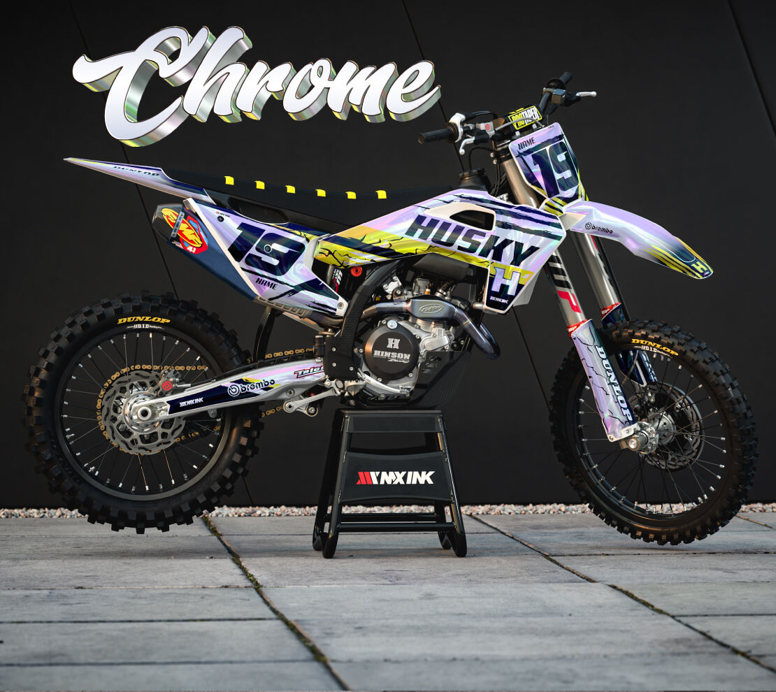 Awakening Series Full CHROME Graphics Kit. Custom made with your name & race number. Add your sponsor logos (Optional).