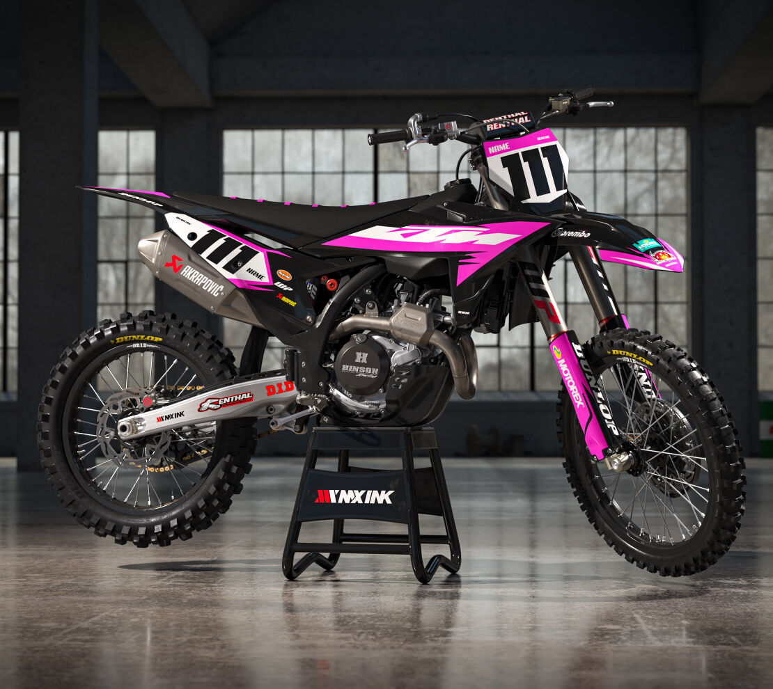Alert Black Pink Series Full Graphics Kit. Custom made with your name & race number. Add your sponsor logos (Optional).