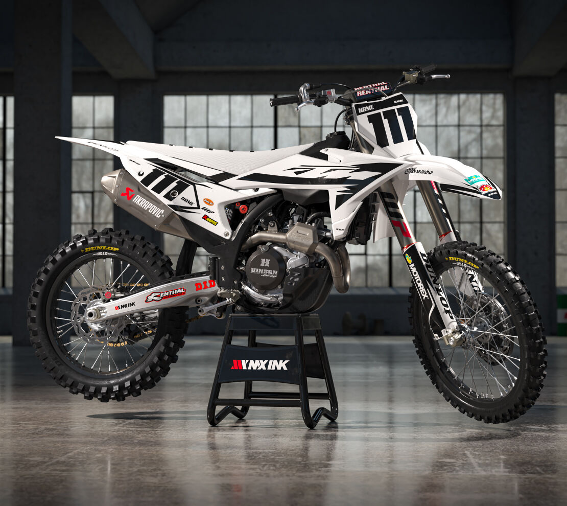 Alert White Black Series Full Graphics Kit. Custom made with your name & race number. Add your sponsor logos (Optional).