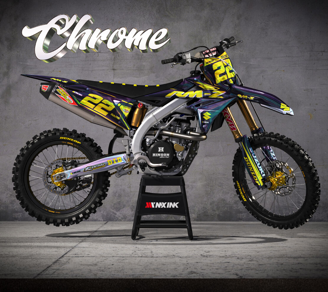 Circuit Black Yellow Series Full CHROME Graphics Kit. Custom made with your name & race number. Add your sponsor logos (Optional).