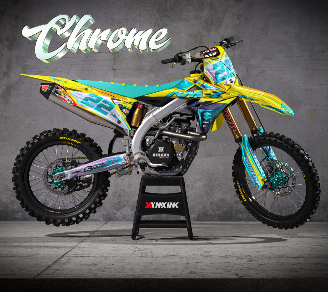 Circuit Teal Series Full CHROME Graphics Kit. Custom made with your name & race number. Add your sponsor logos (Optional).