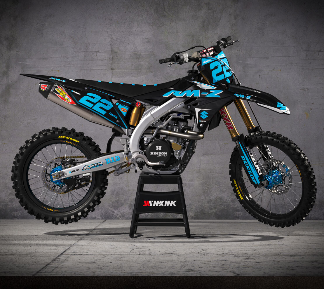 Circuit Black Light Blue Series Full Graphics Kit. Custom made with your name & race number. Add your sponsor logos (Optional).