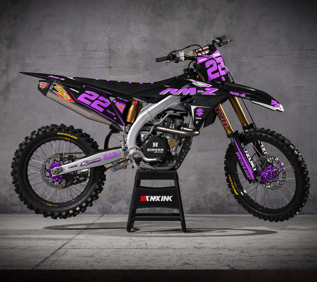 Circuit Black Purple Series Full Graphics Kit. Custom made with your name & race number. Add your sponsor logos (Optional).